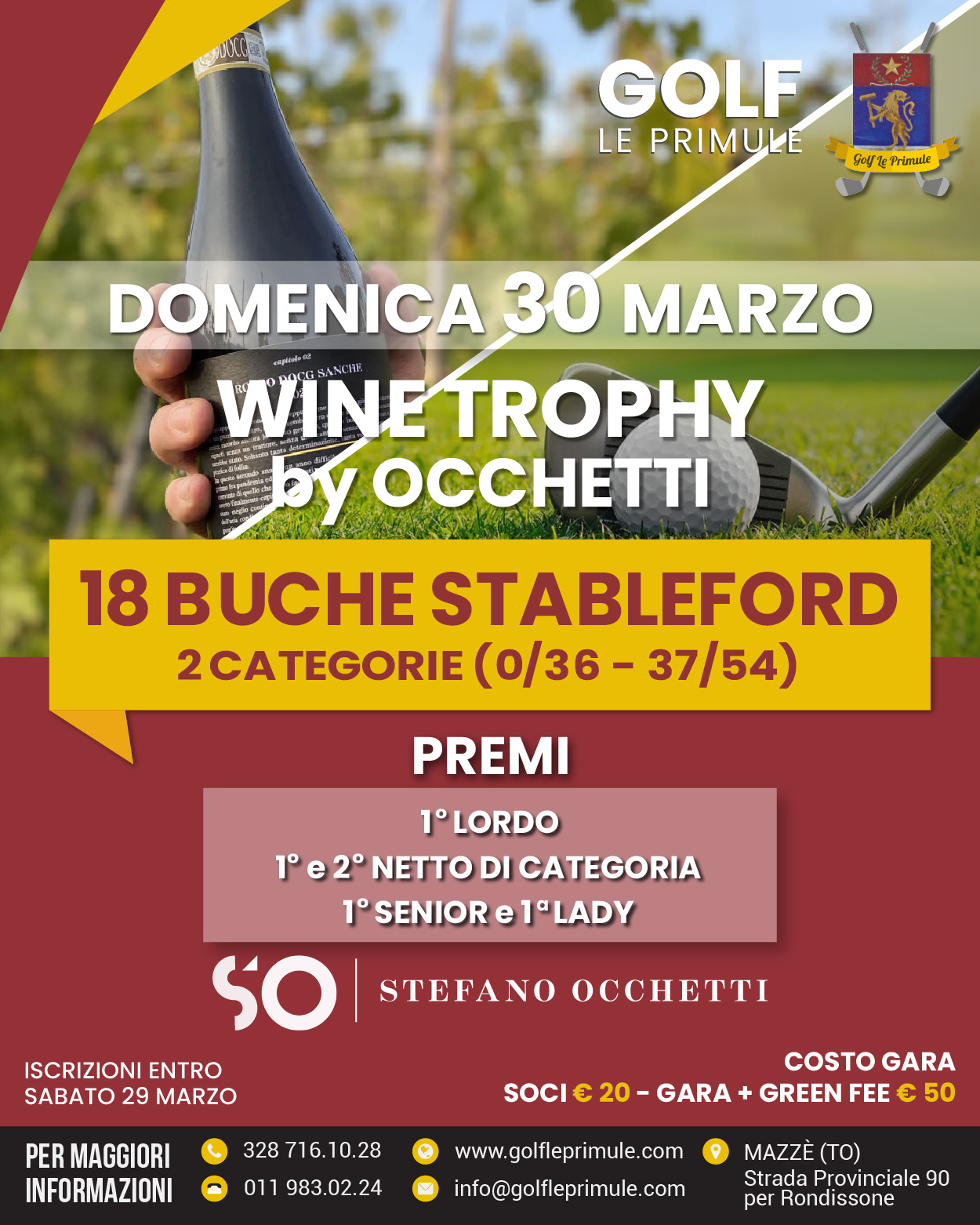 Golf Le Primule- Strada Provinciale 90 per Rondissone, MazzèWINE TROPHY by Occhetti – Domenica 30 Marzo Un mix perfetto di golf, sfida e convivialità ti aspetta! Unisciti a noi per una gara 18 buche Stableford due categorie (0/36…